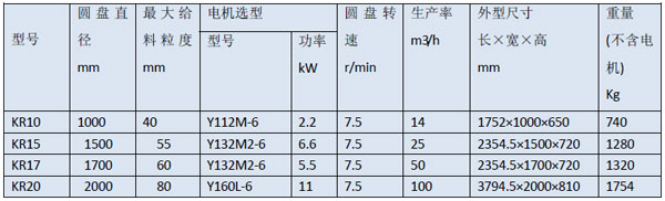 KR 系列圓盤給料機技術參數表